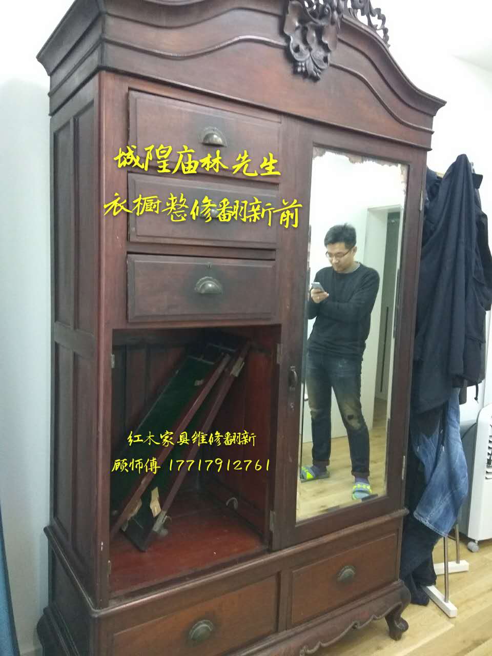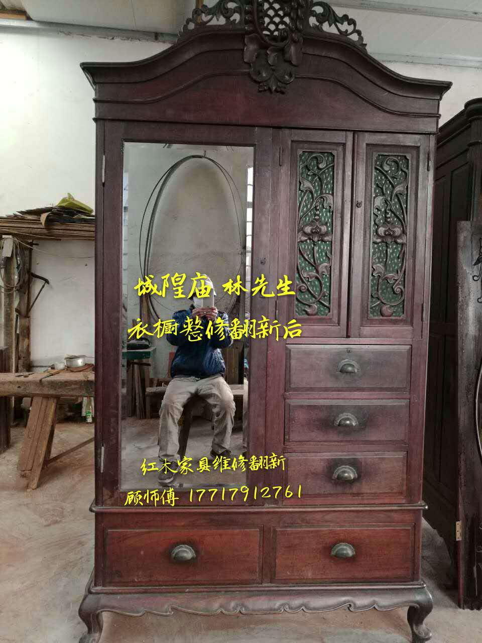 林先生红木大橱也是祖辈留下了的,家里新装修好,虽然格格不入,还是搬过来了,搬家没有请专业红木家具厂师傅,由于搬家公司拆装不专业,导致衣橱拆装有问题,林先生通过网络找到我们,及时上门看了之后,就搬到厂里整修保养了。 红木家具明时书生家具,清时宫廷家具,到了近现代经济水平提高了,红木家具进入平常百姓家,红木家具木料大多上百年成材,能否很好的保养,成了长久使用的关键,上海春本红木家具维修翻新加工厂,专业从事:红木家具维修翻新,明清家具设计定做,老旧家具上门回收服务。从事红木家具三十多年,从一开始的古典红木家具店,到后来红木家具维修翻新加工厂,赢得了上海多数客户的认可与信赖!